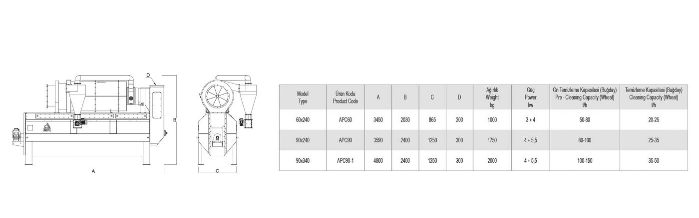 Tamburlu sasör makinesi (Aspirasyon üniteli tamburlu sasör) Amillcleaners APC serisi olarak 3 farklı kapasitede tohum temizleme makinesi olarak üretilmektedir.